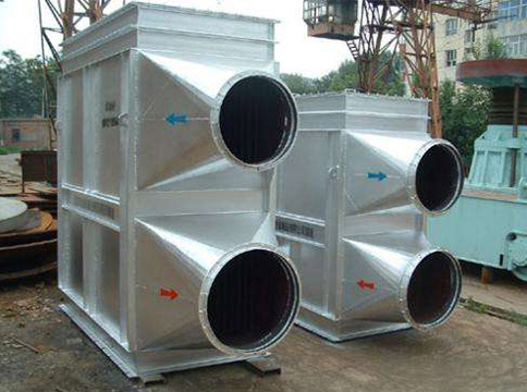 煙道換熱器使用的范圍在煙道內,大致由換熱管和換熱箱組成。包括由多根換熱管兩端分別插入上管板和下管板組成的管束,換熱管中為空氣流道,管束的多個換熱管間為煙氣流道,在管束的上部連接有空氣出/入集合箱,管束通過連接集合箱使空氣依次從多組管束的換熱管中流過。